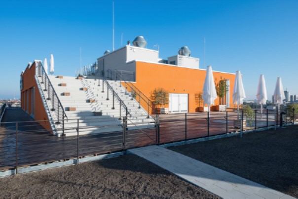 This venue’s tiered architecture creates a striking composition of interconnected and multifunctional spaces. Across 1,088 square meters and three levels, it offers modern design aesthetics with industrial flair and generous open-plan areas.