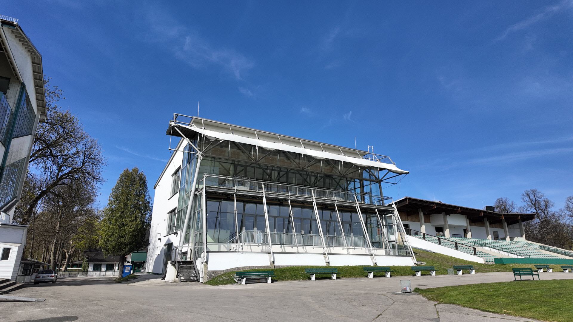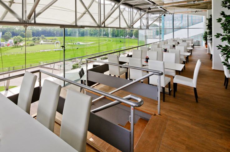 The multi-level event venue, originally built for the 1972 Olympic Games, has been undergoing a complete renovation. Featuring panoramic glass facades and spacious balconies, it offers state-of-the-art facilities for exclusive conferences and corporate events. Located very close to the trade fair grounds, it also boasts stunning views over Munich's horse racing track.