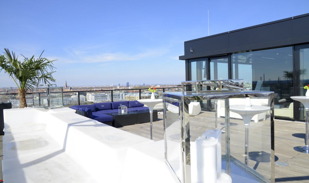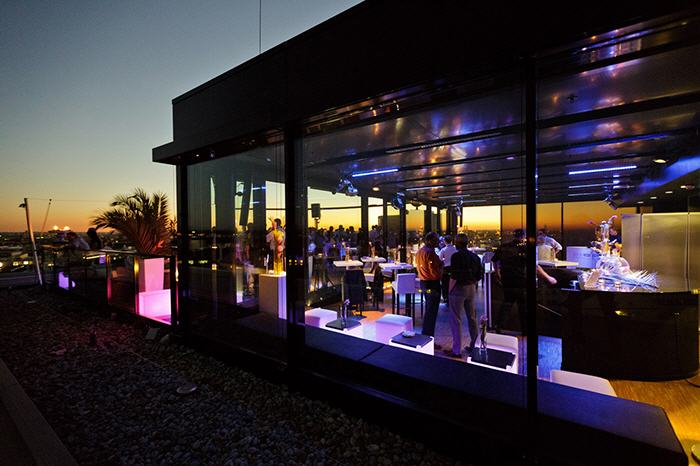 This futuristic exclusive location extends to two floors in 45 meters height and offers a panoramic view to the Bavarian capital.