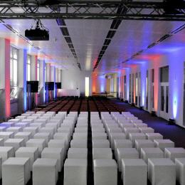 Besides the very well-equipped hall with gallery and a spacious two-story lobby a number of ancillary rooms and additional areas provide room for your event.
